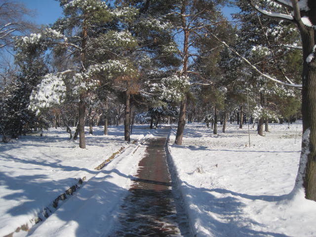 Through the park beside the White House. This stone path cuts a diagonal through the trees and ends up at the edge of Panfilov, an amusement park behind Parliament. Isn’t there some kind of metaphor at play when an amusement park is located directly behind the building that is the seat of governmental power?