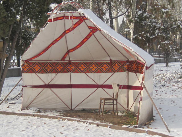 In warmer months this half yurta is festooned with props (including a stuffed bear standing on all fours) and used as a backdrop for photos. In winter it looks broken and kind of lonely. When I walk past I am drawn to the chair. I fantasize about sitting there in some sort of ceremonial posture and waiting for the expressions of passersby. But I haven’t done that.